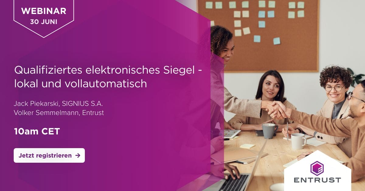 Webinar von SIGNIUS & Entrust am 30. Juni um 10 Uhr (auf deutsch) und um 15 Uhr (auf englisch)